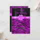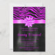 This elegant and glamorous birthday invitation features a purple bow and ribbon on a black brushed metal background with purple and black zebra stripes. The text combines handwritten script and modern sans serif fonts for a classy and sophisticated look.