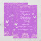 A vibrant and playful birthday invitation featuring a rich purple background with charming balloon, butterfly, and celebration illustrations. Perfect for creating a joyful atmosphere, this fully customizable design allows you to easily edit the name, date, time, and location for a fun and memorable birthday event.