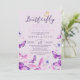 Elegant Baby Shower invitation template is perfect for baby girl shower party. Pink and purple watercolor little butterfly themed invite is full of fun and cute design elements like little butterfly.