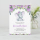 Welcome your little peanut in the sweetest way with this Purple Elephant Baby Shower Invitation. Featuring an adorable baby elephant surrounded by soft purple florals and greenery, this invite sets the tone for a heartwarming celebration in honor of your baby girl. Celebrate your little peanut with love, joy, and a touch of whimsy. BBS256