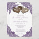 Convite Purple Floral Lace Burlap Hearts Bridal Shower