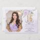 Convite Purple Floral Sweet Sixteen 16th Birthday Photo