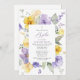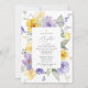Invite friends and family in style and set the tone for your special day with this elegant baptism invitation. Design features purple and yellow watercolor flowers and greenery on white background.