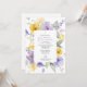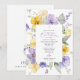 Invite friends and family in style and set the tone for your special day with this elegant first holy communion invitation. Design features purple and yellow watercolor flowers and greenery on white background.