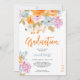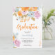 Boho purple, blue orange floral graduation open house invitation featuring pretty hand painted orange, lavender and blue flowers watercolor illustration with a modern elegant script font , with bohemian greenery foliage. Perfect for Spring, summer outdoors garden party