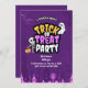 Celebrate Halloween in style with this Purple and Orange Trick or Treat Party Invitation! Featuring a playful mix of spooky-cute graphics—like grinning pumpkins, silly ghosts, and fluttering bats—this design is perfect for kids, families, and fun-loving guests of all ages. The bold purple and bright orange color scheme captures the spirit of the season, while whimsical fonts add a lighthearted, festive touch. Fully customizable with your party details, this invitation is a fun and charming way to gather everyone for an evening of costumes, candy, and trick-or-treat excitement!