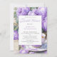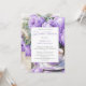 A graceful still life sets the tone for a refined bridal shower celebration: a porcelain teacup brimming with warm tea rests on a matching saucer, both adorned with delicate purple floral motifs that echo the lush bouquet of blooming lavender purple peonies nearby. The soft interplay of green leaves and violet petals creates a romantic, garden-inspired ambiance. An elegantly framed invitation card peeks into view, bordered with coordinating blossoms, inviting guests to gather in honor of love and new beginnings. The overall composition evokes charm, warmth, and timeless femininity—perfect for a tea-themed bridal shower steeped in beauty and sentiment. The back of the card is a full version of the beautiful floral illustration. Personalize with your own information.