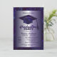 Celebrate your graduate's incredible milestone with this glamorous purple and silver graduation party invitation. Featuring a stylish faux glitter graduation cap and a deep violet sparkling background, this modern design is perfect for setting an elegant tone for both high school and college graduations. Easily update the template fields with your graduate's name, school, class year, and party details for a flawless finish. A beautifully chic way to invite friends and family to an unforgettable celebration!