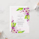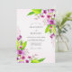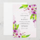 This design features a lush arrangement of vibrant purple and pink orchids paired with bright lime green leaves. Set against a crisp white backdrop, the watercolor botanical elements create an airy and exotic mood perfect for a summer event. The delicate petals and trailing greenery evoke a sense of tropical elegance and romantic sophistication.