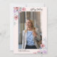 Lindo diseño de Invitacion de moda, con acuarela floral de verano rosa y purpura con purpurina de oro tipografía de confeti fiesta de graduación el diseño se puede personalizar con su foto en la parte de atras asi como los detalles de la Fiesta.