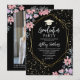 Lindo diseño de Invitacion de moda, con acuarela floral de verano rosa y purpura con purpurina de oro tipografía de confeti fiesta de graduación el diseño se puede personalizar con su foto en la parte de atras asi como los detalles de la Fiesta.