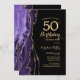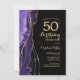 Roxo, preto e ouro agam 50º convite de aniversário. Elegante design moderno com aquarela agate marble geode background, faux glitter gold e typografia script font. Trendy convida o cartão perfeito para uma comemoração de dia das mulheres na moda. Impressos convites Zazzle ou modelo de impressão digital instantânea para download.