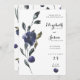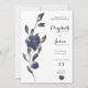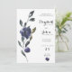 Flores de cor aquosa, de cor dramática e temperada, com folhas e flores em tons de terra de azul e roxo da íris, cinzentos e verdes mosquitos. Um spray lateral de flores enfeita o lado esquerdo, com fontes serif contrastantes e caligrafia florescida compensando a paleta suja, perfeita para casamentos e festas. Contacte-nos aqui para quaisquer alterações e aditamentos personalizados à gama Floral de Cores de Água em Azul Iris que acompanhem este design único pintado à mão.