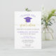 Anuncie sua festa de formatura e comemore suas cores escolares com este convite roxo. Este convite apresenta um boné roxo com letras douradas. Personalize o texto para compartilhar todos os detalhes de sua festa de formatura.