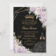 Convite Púrpura Lilás Preto Floral Dourado Quinceañera