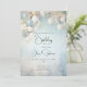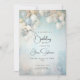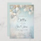 Flores claras, azuis e brancas, cercadas por balões claros, azuis e brancos, para um convite de aniversário de uma menina festiva, acentuadas com caligrafia de estilo manuscrito. Use nossa modelo fácil de personalizar para personalizar com seus detalhes - uma Design de impressionante © por WhimsicalArtwork™