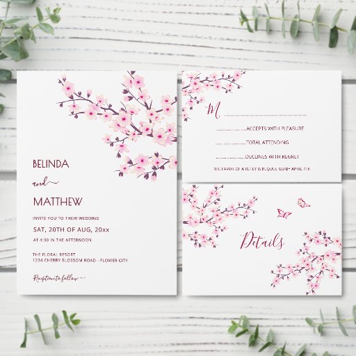 Convite QR Code | Cherry Blossoms Pink White Wedding