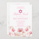 Elegant pink floral Bat Mitzvah invitation featuring a Star of David and watercolor flowers. Perfect for celebrating a girl's special day in style with a modern and feminine design.