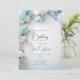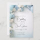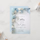 Flores claras, azuis e brancas, cercadas por balões claros, azuis e brancos para um convite de aniversário de uma menina festiva, acentuadas com caligrafia de estilo manuscrito. Use nossa modelo fácil de personalizar para personalizar com seus detalhes - uma Design de impressionante © por WhimsicalArtwork™