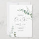 Simples casamento botânico elegante, tudo em um convite. Convite de casamento moderno minimalista com roteiro de caligrafia moderno e cor d'água pintada manualmente com eucalipto verde com detalhes e código QR RSVP no verso. Você pode personalizar o texto, o estilo da fonte, a cor e o tamanho em frente e atrás do convite. Por favor, foi livre de me contactar para encontrar itens correspondentes.