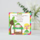 Comece sua celebração fora do direito com este convite adorável de Luau. Se é um assado do quintal ou um partido de aniversário de criança este é o perfeito convida para você! Tem uma palmeira no canto esquerdo. Sob a árvore é uma cabana do tiki com um telhado da grama. Há esta menina de Hula adorável que está ao lado da árvore. Está vestindo uma saia de grama e tem uma flor em seu cabelo louro bonito. No centro superior há a palavra "luau" com uma flor vermelha do hibiscus. O centro é branco com uma luz - guarnição amarela. Em torno do convite inteiro é um fundo listrado colorido personaliza este convite para seu luau! Verifique para fora o muito outro design e produtos nesta linha.