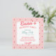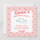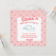 Quadrado com um tema de morango elegante. Inclui detalhes em renda, fontes manuscritas e um laço de fita. Tem um clima de chá ou piquenique. Ótimo para aniversário de menina ou jovem, Dia das Galentinas, Dia dos Namorados, encontro de amigas ou até um chá de bebê. Uma paleta de morango com vermelho rubi, rosa pastel / rosa bege, verde menta suave / sálvia e branco de toalha de mesa.