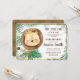 Lion Themed Party/ Virtual Chá de fraldas Invitation - Whimsical Lion Party/ Chá de fraldas por Mail Invitation - Ele é o rei da selva e, em breve, o rei de você em casa e seus corações! Um pequeno rei está a caminho. Um convite para chás de fraldas virtuais para os tempos em que você não pode estar com as pessoas que ama. Porque as coisas nem sempre vão como planejado. Apresentando um bebê rei feio cercado por novas folhas verdes da selva tropical. A parte traseira da carta tem uma textura de cartolina falso com um sutil padrão verde de folha. Perfeito para um chá de fraldas virtual. Um pouco!