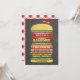 Hambúrguer Empilhado Único com cebolas, picles, alface, cachorro quente, queijo, mostarda, ketchup, sobre fundo de chalkboard. Um padrão piquenique vermelho de gingham está na parte de trás do convite. Seu convidado vai adorar este convite único. Personalize com seu próprio texto. Por favor, procure na minha loja mais assim. Ilustração original por pj_design. Envie-me um e-mail se precisar de ajuda.