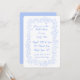 Celebre o estilo da noiva com este elegante chá de panela azul e branco, com uma delicada borda botânica e um guião manuscrito caprichoso. Perfeito para um primavera ou chá de verão, este design de eterno combina folhagem de aquarela com encanto romântico, definindo o tom para um encontro alegre e íntimo. Totalmente personalizável com seus detalhes de eventos, este convite para chás de panela florais é ideal para celebrações clássicas, rústicas ou de temas jardins. Personalize-o facilmente para o seu dia especial — excelente para chás de casamento, brunches ou festas de chá que honrem a noiva. Uma bela escolha para a sua coleção de artigos de chá de panela.