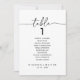 Esta tabela clássica branca preta de número 1 é perfeita para um casamento moderno. O design simples e elegante apresenta a tipografia de scripts clássicos e ricos em preto e branco. A placa impressão verso (frente e verso)