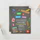 Incentive miúdos olhar para a frente ao ano escolar novo com o a de volta ao partido da escola! Este convite colorido tem um fundo cinzento da textura do quadro e tem muitos elementos da sala de aula enchidos em torno do convite. As coisas incluem, pastéis, grampos de papel, pinos, régua, lápis, lápis colorindo, maçã com A+ nele, as etiquetas da estrela, colagem, pintam o tubo, pincel, calculadora. Personalize facilmente com seus detalhes do partido!