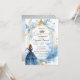 Tara de brilho prateado, vestido de princesa azul-aquarela e moldura sobre fundo prateado. Divirta-se na sua festa da quinceañera com este convite elegante. Convide seus convidados para levantar um copo e se unir à diversão com estes convites festivos.