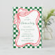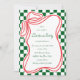 Comemore a época de férias em estilo convidando seus entes queridos para uma festa de Natal com nossos encantadores convites de fundo retro-cheios e com estrutura de arco. O convite mostra os detalhes de seu evento em um roteiro belamente manuscrito, enfeitado com um arco festivo e fita em vermelho clássico, contra um pano de fundo alegre de retrorreflectores verdes. Espalhe a alegria do feriado e faça seu evento se destacar com nossos convites caprichosos.