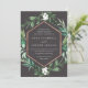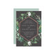 Escolha estes convites botânicos de cor rica para casamentos no inverno elegantes, núpcias de outono ou outono, ou casamentos noturnos no verão. O design chic combina elementos naturais e geométricos para uma aparência nova e moderna. Seus detalhes de casamento aparecem em letras brancas, enquadrados por uma falsa borda de folha de cobre e cercados por folhagem verde, folhas exuberantes e pequenas flores brancas. Itens correspondentes disponíveis na nossa coleção de Estufa.