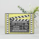 Espalhe as notícias de uma festa temática de Filme com este convite personalizado divertido. Um conselho preto-e-branco mostra todos os convites do seu partido, estilo Hollywood, e faixas de filme criam fronteiras nas laterais. Entre em contato comigo com cores personalizadas.