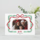 Cartão de Foto do Arco Botânico Vermelho Moderno de Natal Frisado com texto JOY