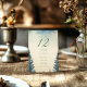 Esta placa de número da tabela mostra um design sereno de floresta aquosa com evergreens sujos moldando a placa. Os tons suaves, azuis calmantes e verdes se misturam perfeitamente com o layout minimalista, criando um ambiente elegante, mas rústico, para qualquer floresta ou evento ao ar livre. O grande número da tabela é exibido no topo, enquanto os nomes dos convidados são listados claramente abaixo, fazer fácil para os participantes encontrar seus assentos. Perfeito para casamentos ou eventos formais que incorporam uma estética natural de inspiração florestal.