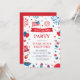 quadro de moldura para churrasco no festival de 4 de julho com bandeiras, grelhas, fogos de artifício, balões, comida e bebida. Isolado em fundo branco. Design para convites do Dia da Independência Americana. Tipografia personalizável em vermelho e azul.