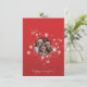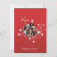 Uma forma excelente de celebrar o Natal ou o Ano Novo é enviar seus desejos com este elegante design de flocos de neve em fundo vermelho. Adicione sua foto de família, mude sua mensagem e envie o cartão para aqueles que você ama!