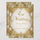 Convite Quadro de Pérolas de Beige Branco Dourado Casament