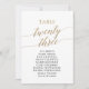 Estes elegantes cartões de 23 assentos da mesa dourada são perfeitos para um casamento simples. A design neutra apresenta uma carta minimalista decorada com a tipografia falsa de ouro romântica e caprichosa. A placa impressão na frente e atrás (lado duplo).