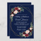 Clorideira Floral Borgonha Azul Dourada Frame Geométrico Convite para Casamento - Azul Traseira