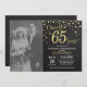 65º aniversário de casamento com foto personalizada. Chalkboard Black e Dourado Convite. Sessenta e cinco anos de casamento. Quadro negro e fundo de diamante brilhante Dourado. Dourada Confetti. Aniversário Adulto. Mulher ou Festa de aniversário masculina. Para mais personalização, clique no botão "Personalizar" e use nossa ferramenta de design para modificar este modelo.