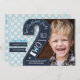 Um convite moderno para o segundo aniversário do seu filho, com 2 em quadro negro e pontos azuis claros.