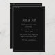 Elevem seu anúncio de casamento com este "Convite para Casamento Negra Moderno com a Fronteira de Prata e Acentos Estudantes." Com um sofisticado fundo negro, esse design minimalista se acentua com linhas de prata elegantes e detalhes de olhar metálico nos cantos, criando uma estética ousada mas refinada. Ideal para eventos de gravata negra, cerimônias noturnas ou casamentos de temas modernos, este convite é totalmente personalizável para mostrar seus detalhes de eventos com elegância de eterno e simplicidade de na moda.