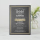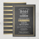 Você pode guardar um segredo? Convide a família e os amigos para uma elegante e excitante celebração de aniversário surpresa com convites de festas personalizados de preto, branco e ouro. Toda a redação desta modelo é simples de personalizar, incluindo a mensagem que diz "Shhh! É uma SURPRESA." O design apresenta uma fronteira distribuída moderna sobre um fundo falso de quadro negro, a tipografia clássica de arte de vintage deco e a caligrafia de na moda. Observe que o ouro é impresso a cor, não a folha metálica. Este cartão pode ser personalizado para qualquer ano ou tipo de evento e é adequado para um homem ou uma mulher. Feliz Aniversário!