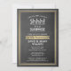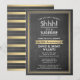 Você pode guardar um segredo? Convide familiares e amigos para uma elegante e excitante comemoração de aniversário surpresa com convites de festas personalizados de folha de ouro preto, branco e preto. Toda a redação nesta modelo é fácil de personalizar, incluindo a mensagem que diz "Shhh! É uma SURPRESA." O design apresenta uma fronteira distribuída moderna sobre um fundo falso de quadro negro, a tipografia clássica de arte de vintage deco e a caligrafia de na moda. Por favor, note que o ouro é impresso a cor verde e não a folha metálica. Parabéns e feliz aniversário!