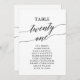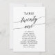 Estes elegantes cartões pretos de 21 lugares são perfeitos para um casamento simples. A design neutra apresenta uma carta minimalista decorada com tipografia romântica e caprichosa. A placa impressão na frente e atrás (lado duplo).