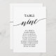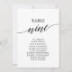 Estes elegantes cartões pretos número 9 são perfeitos para um casamento simples. A design neutra apresenta uma carta minimalista decorada com tipografia romântica e caprichosa. A placa impressão na frente e atrás (lado duplo).