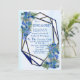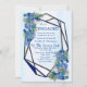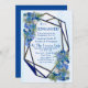 Quadros geométricos de marinho de ouro com flores azuis de milho, rosas brancas e lírios de arum, flores azuis de cor azul com fundo de papel texturizado claro para um convite de festas de primavera ou de verão
